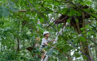 Een van de letterlijke hoogtepunten van dit survivalkamp is het klimbos! Hoog in de bomen met diverse hindernissen, van schommels tot wiebelbrug en nog veel meer.